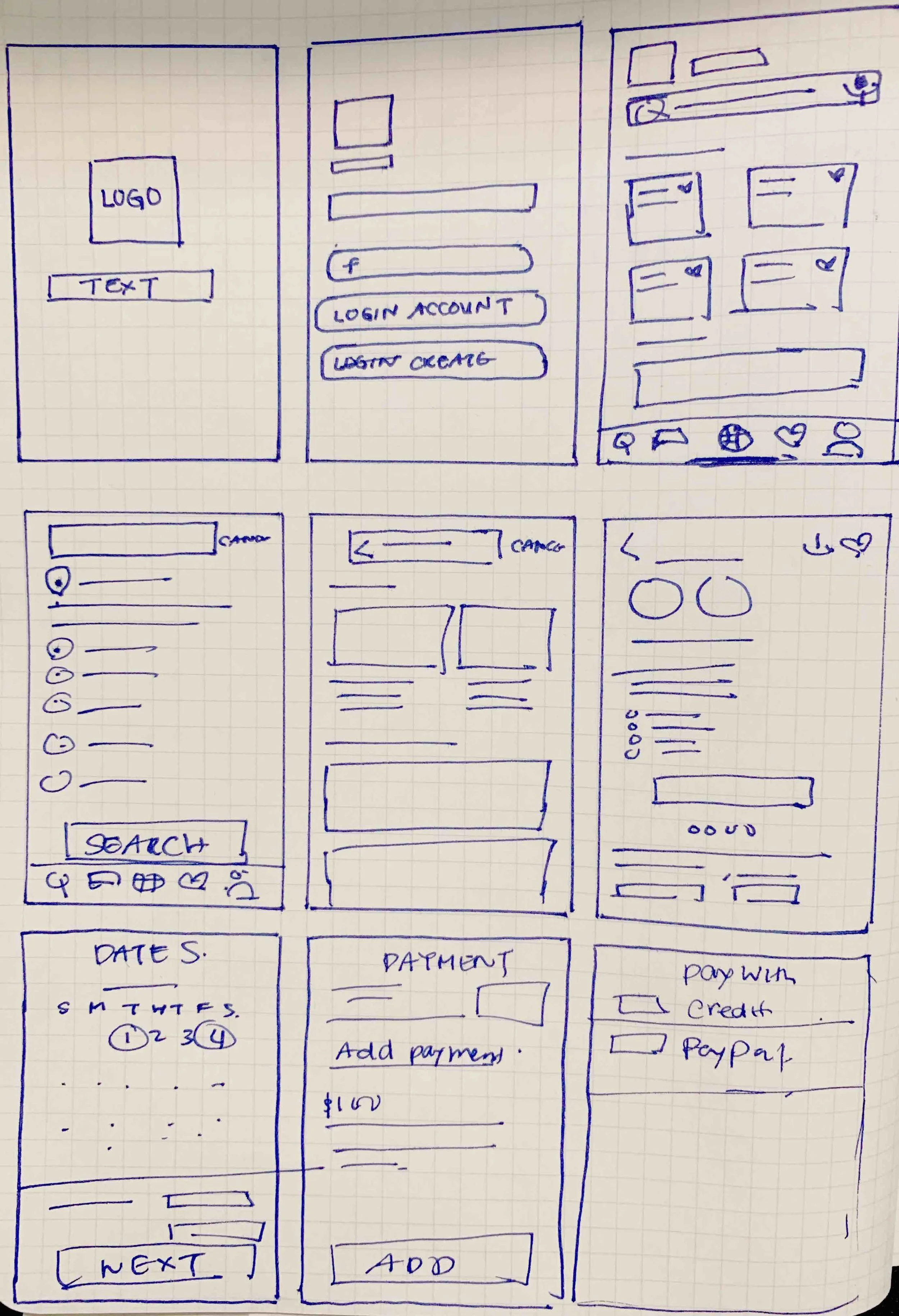 For the home screen I decided to include destinations and locations as a way for users to explore destinations instead of just being restricted to the search bar.