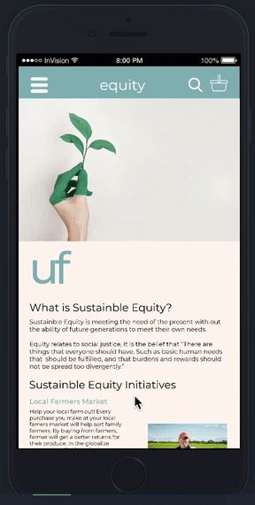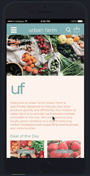 Urban Farm is a ios mobile app focused on sustainable equity. The mobile app allows users to make sustainable food choices by allowing users to buy organic produce at their nearby farmer market. The app is intended to reduce carbon emissions by buying local produce and helping small farming business owners. The app allows user to make transaction by scanning a QR Code for certain produce by linking their credit card account. In buying local produce, users will be awarded points that they can redeem for gift cards. This is an incentive for users to buy local and be more sustainable, while also making grocery shopping a interactive experience.